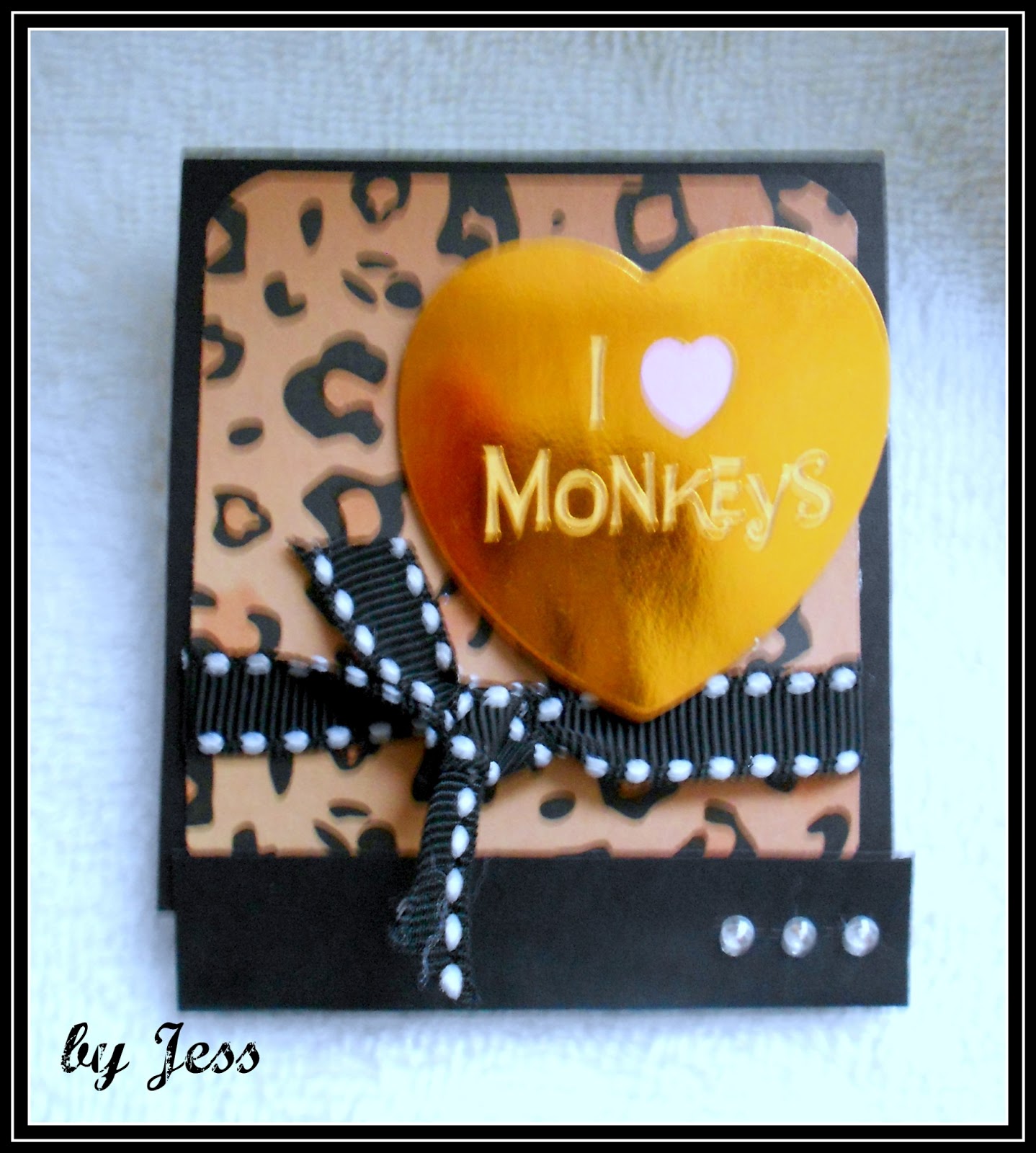 Los siguientes fueron casi iguales, pues por dentro solo agregué unos die cuts de changuitos, pues así les digo a veces a mis nenes. Por fuera igual listón, y un die cut.